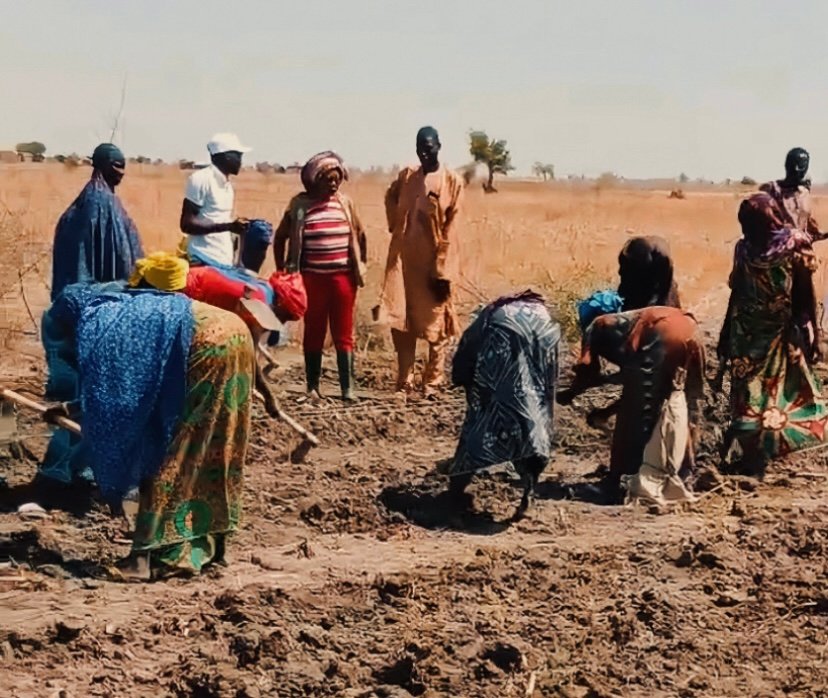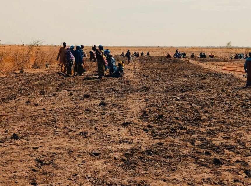 Dawn unravels, revealing shadows bent under the weight of water basins. The step supple, silent. Like felines stalking hope, hips rhythmed by the walk. The sun climbs, insatiable, suffocating skin and hearts. “We cultivate in shifts. One group works, the other keeps watch. We’ve learned at the school of survival.” Hauwa, 32, two children, speaks while scanning the horizon. Her cracked hand brushes the cracked ground, tenderly touching a fragile sprout. An almost maternal gesture, a pact with life. “The land here is difficult, but we’ve learned to work it.”