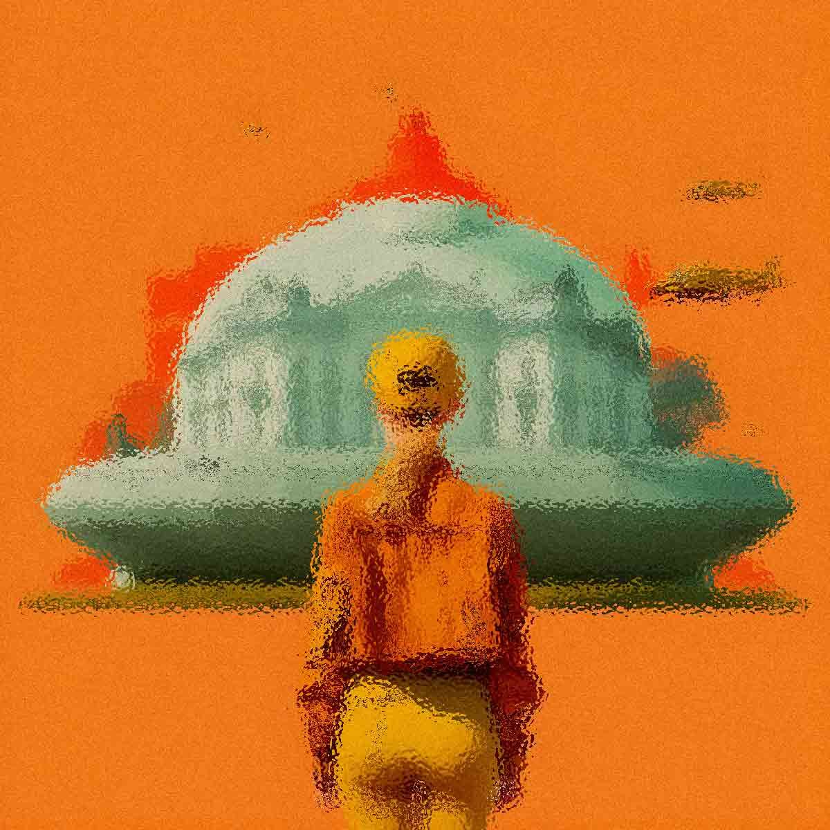 Abstract art, collage with female portrait and mountains, generative ai